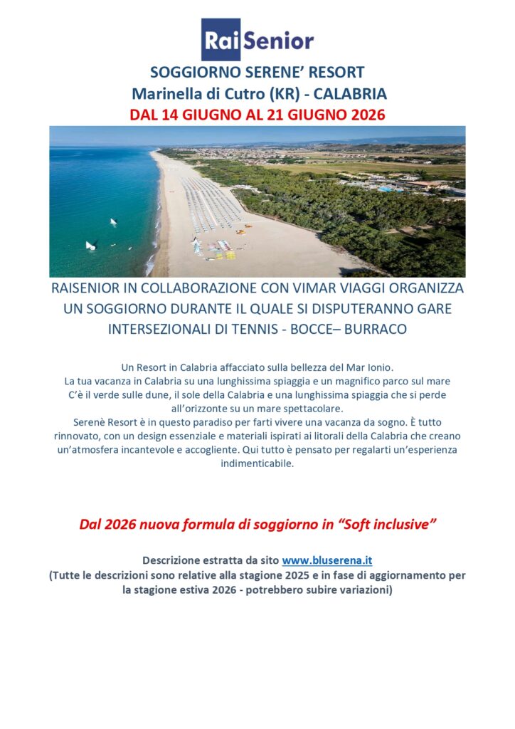 SOGGIORNO SERENE’ RESORT (CALABRIA)