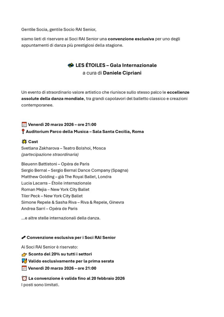 09 Feb LES ÉTOILES – Gala Internazionale – Venerdì 20 marzo 2026 – ore 21:00