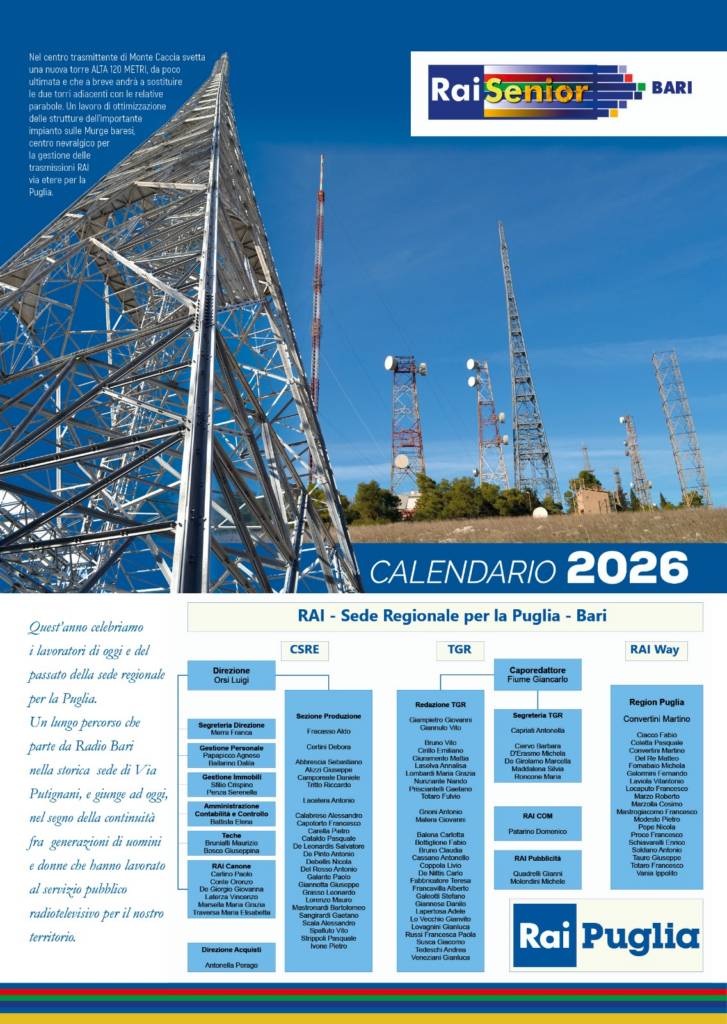Nel calendario Raisenior di Bari 2026, vengono quest’anno celebrati i Lavoratori di oggi e del passato della sede regionale per la Puglia.