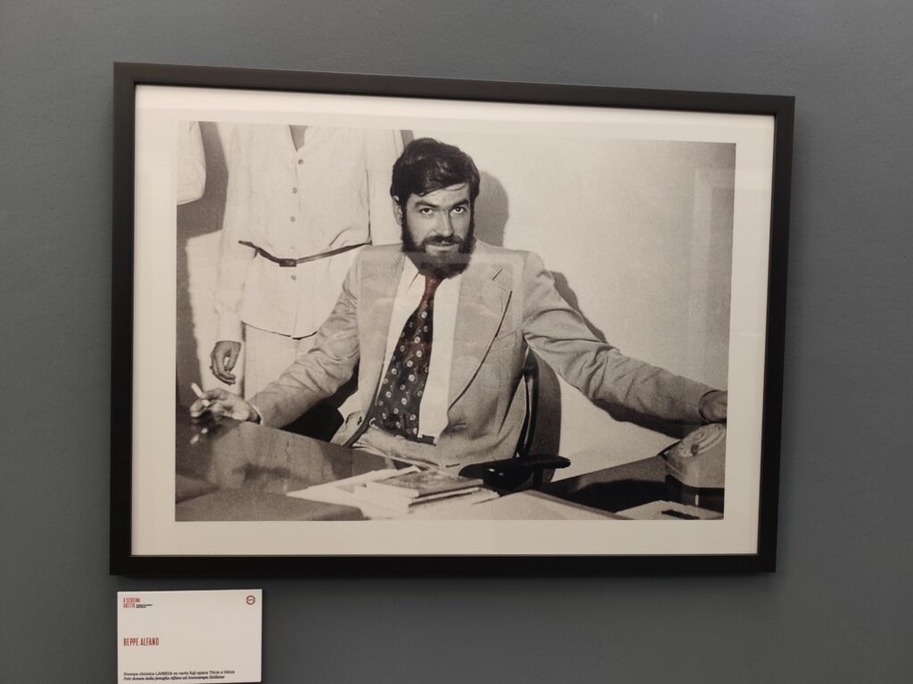 La foto storica che are la mostra è quella di Mario Francese uno dei grani giornalisti siliani uccisi dalla mafia